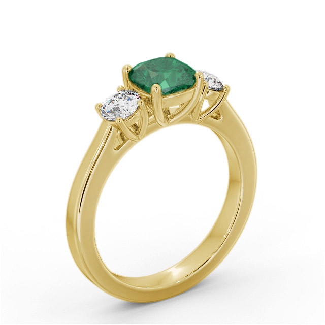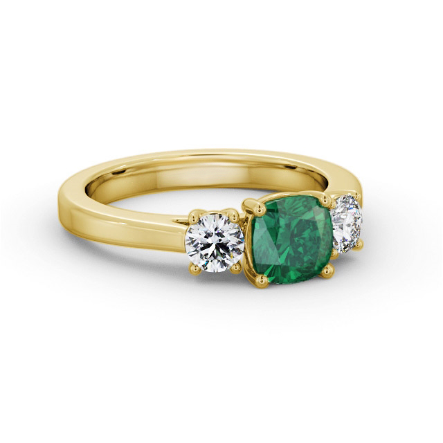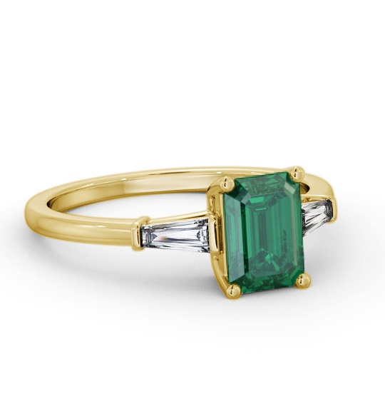 Three Stone Emerald and Diamond 1.20ct Ring 9K Yellow Gold | Alonis