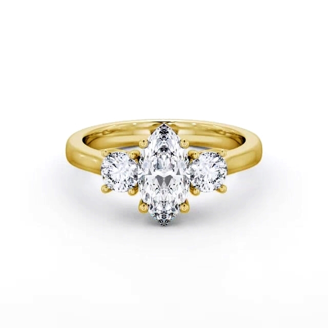 Three Stone Marquise and Round Diamond Trilogy Ring 18K Yellow Gold | Keeva