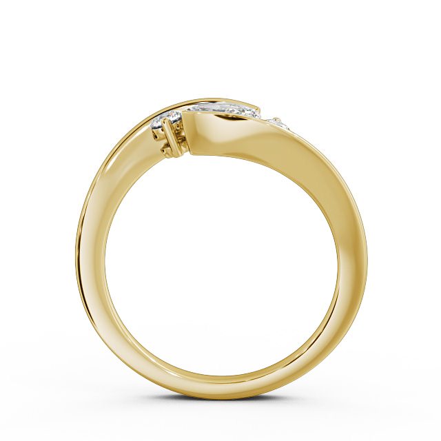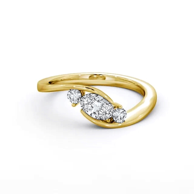 Anissa three stone diamond trilogy ring in a 18K Yellow Gold setting. This trilogy ring features a classic bypass design with one larger oval shaped centre diamond and small round diamonds on each side. This ring is available in a range of metal options and your choice of natural or lab grown diamonds. We offer a free design service for any customised changes that you may require.