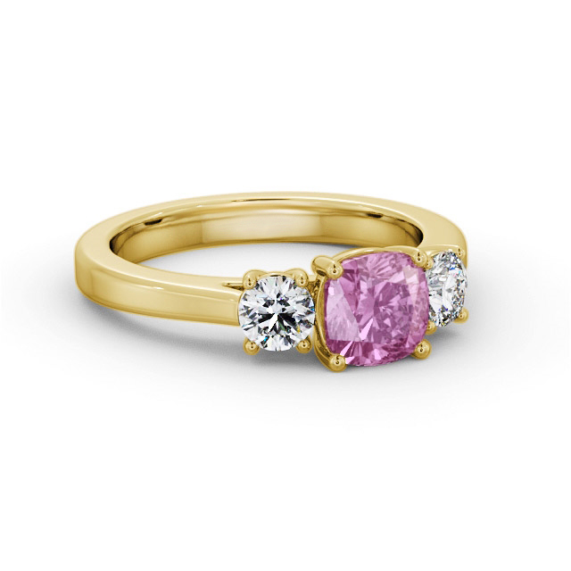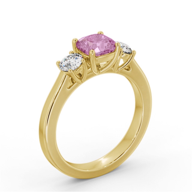 Three Stone Pink Sapphire and Diamond 1.40ct Ring 9K Yellow Gold | Alonis