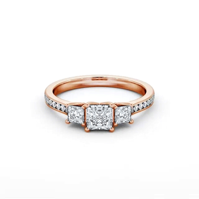 Three Stone Princess Trilogy Ring 18K Rose Gold with Side Stones | Arisha