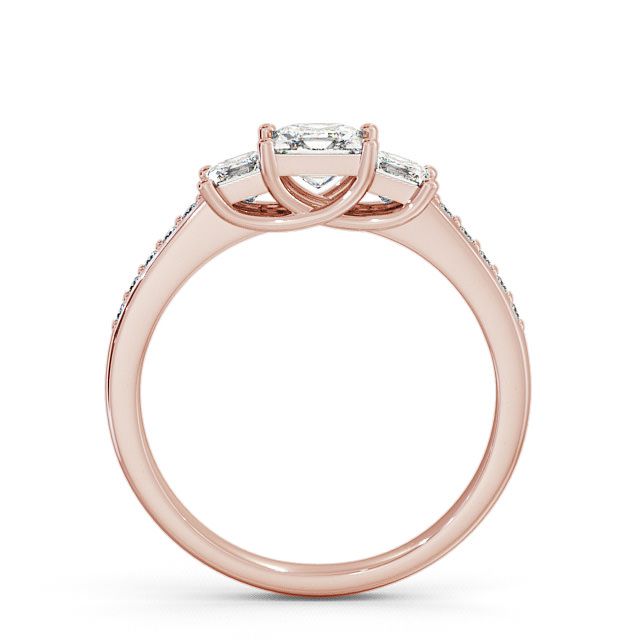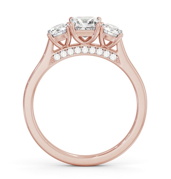 Three Stone Princess Diamond Trilogy Ring 18K Rose Gold with Channel | Elisa