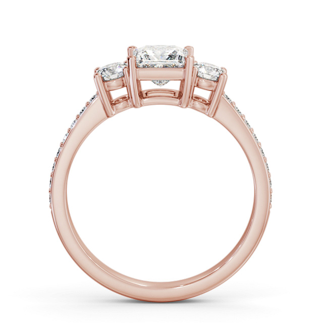 Three Stone Princess and Round Ring 18K Rose Gold with Side Stones | Yaneli