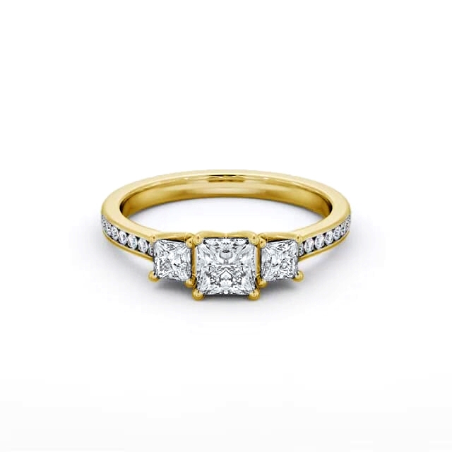 Three Stone Princess Trilogy Ring 18K Yellow Gold with Side Stones | Arisha
