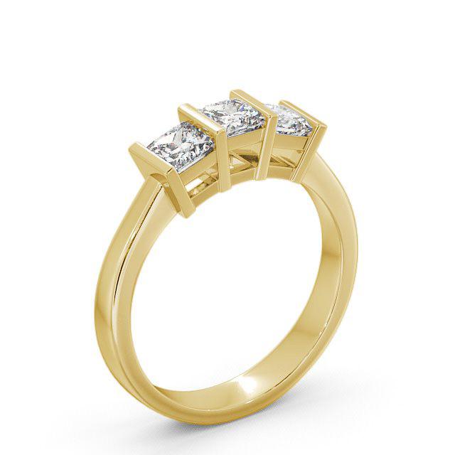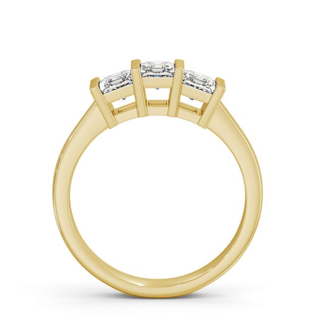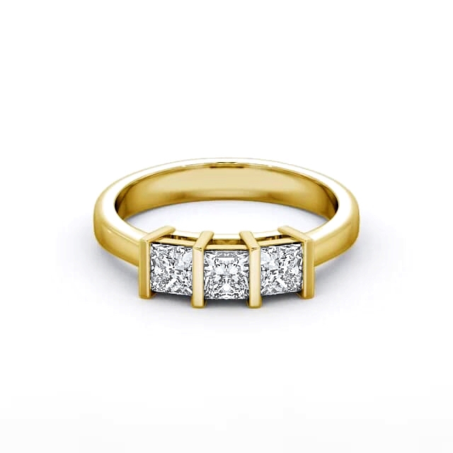 Makayla three stone diamond trilogy ring in a 18K Yellow Gold setting. Elegant and charming, this trilogy ring features three similar sized princess shaped diamonds over a polished finish clean and sleek band. This ring is available in a range of metal options and your choice of natural or lab grown diamonds. We offer a free design service for any customised changes that you may require.