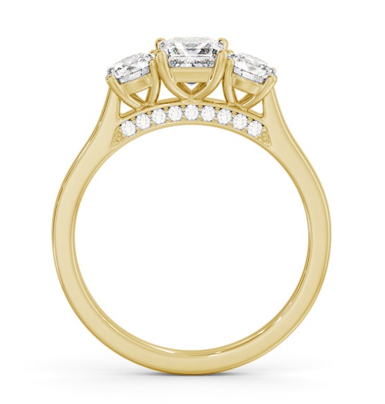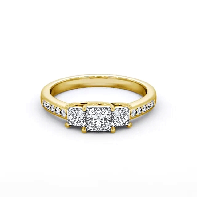 Three Stone Princess Diamond Trilogy Ring 18K Yellow Gold with Channel | Elisa