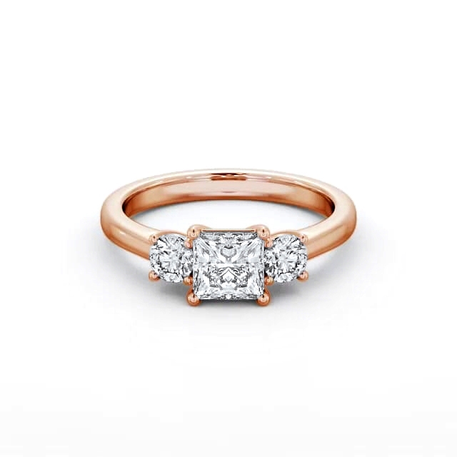 Three Stone Princess with Round Diamond Trilogy Ring 9K Rose Gold | Ensley