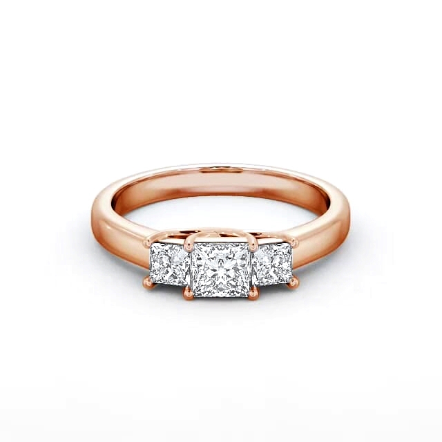 Three Stone Princess Diamond Sweeping Prongs Ring 9K Rose Gold | Evanna