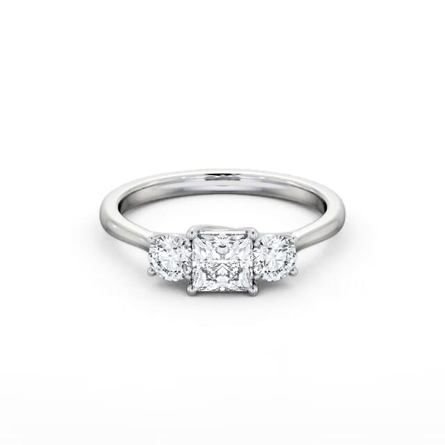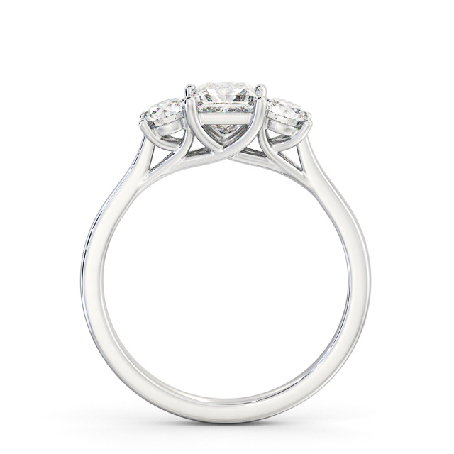 Three Stone Princess and Round Diamond Trilogy Ring 9K White Gold | Christine