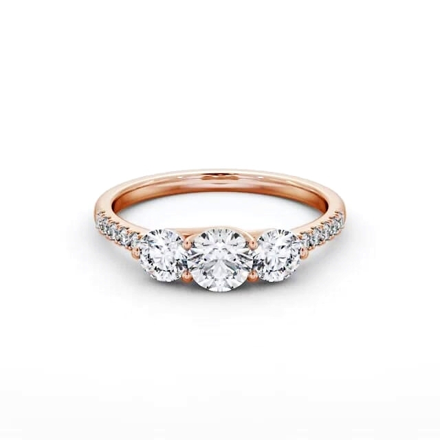 Three Stone Round Diamond Trilogy Ring 18K Rose Gold with Side Stones | Alana