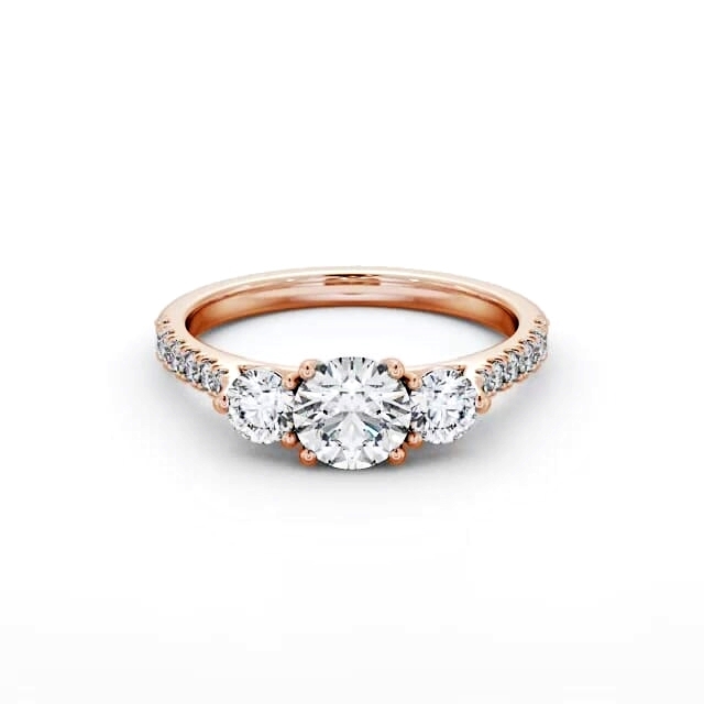 Three Stone Round Diamond Trilogy Ring 18K Rose Gold with Side Stones | Campbell