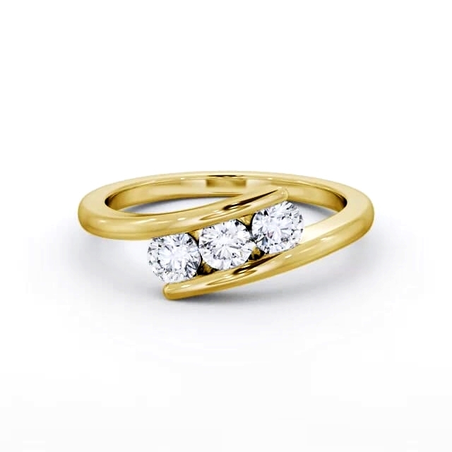Three Stone Round Diamond Offset Band Ring 18K Yellow Gold | Camber