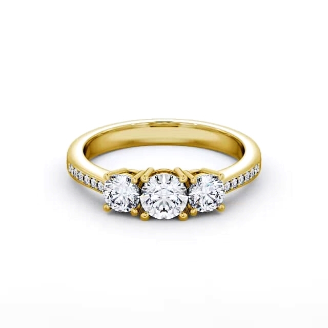 Three Stone Round Diamond Trilogy Ring 18K Yellow Gold with Channel | Mabel