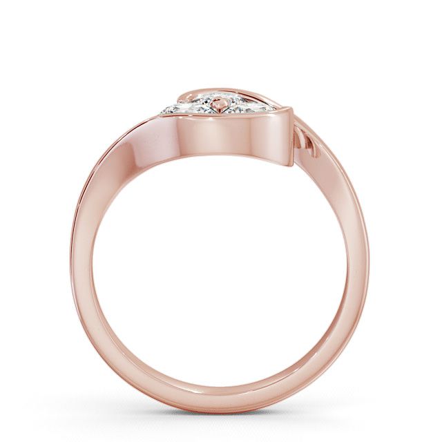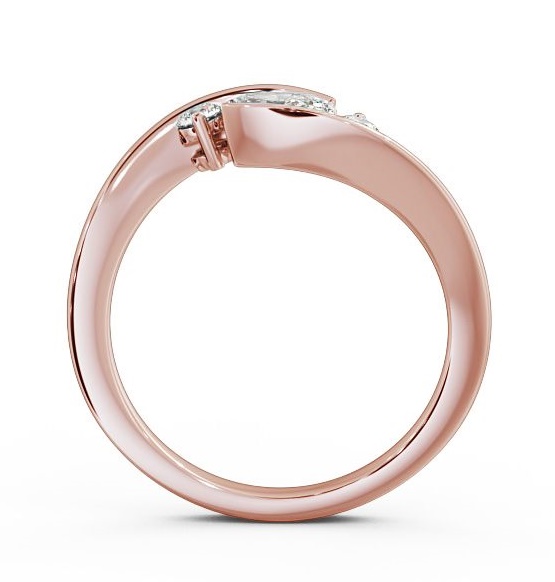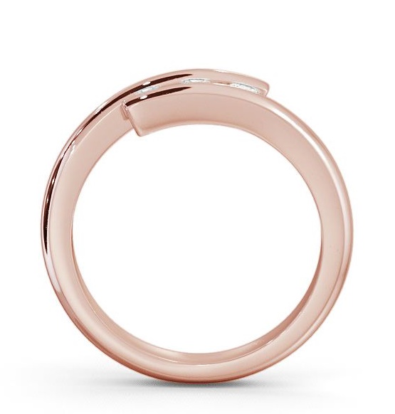 Vasilisa three stone diamond trilogy ring in a 9K Rose Gold setting. Three round diamonds of similar size rests at the centre of this polished finish bypass design band for a mesmerising allure. This ring is available in a range of metal options and your choice of natural or lab grown diamonds. We offer a free design service for any customised changes that you may require.
