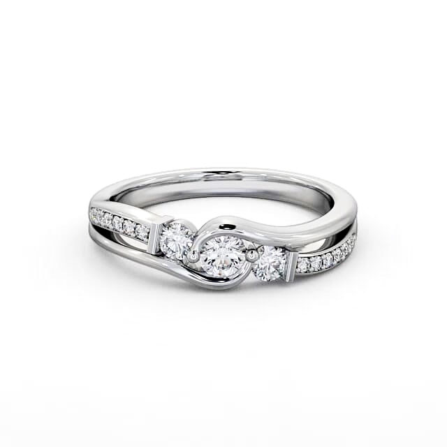 Marla three stone diamond trilogy ring in a 9K White Gold setting. Shimmering smaller round diamond-lined shank gently embraces a trio of larger round diamonds at the centre of this exquisite ring. Smaller diamonds will be of VS1 Clarity and F Colour as standard. This ring is available in a range of metal options and your choice of natural or lab grown diamonds. We offer a free design service for any customised changes that you may require.