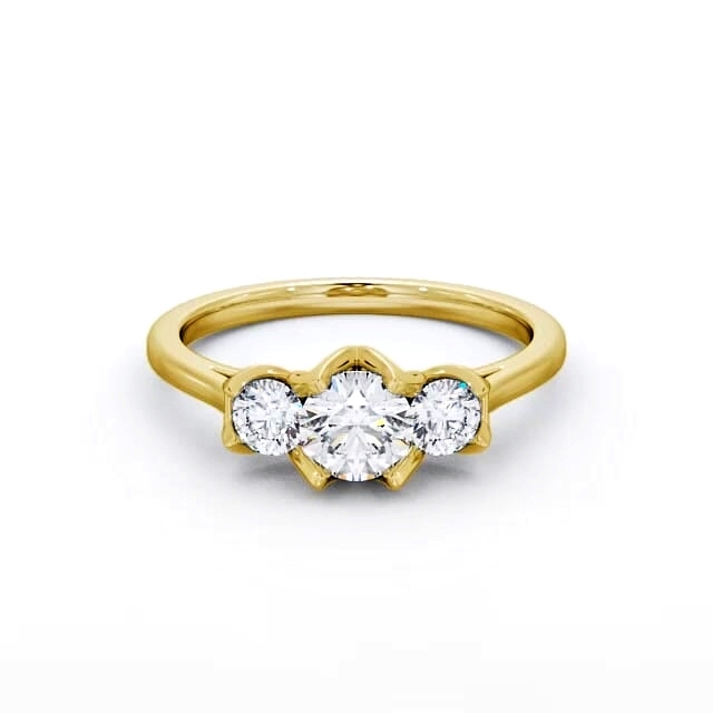 Three Stone Round Diamond Leaf Shaped Prongs Ring 9K Yellow Gold | Jaylen