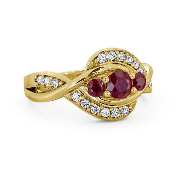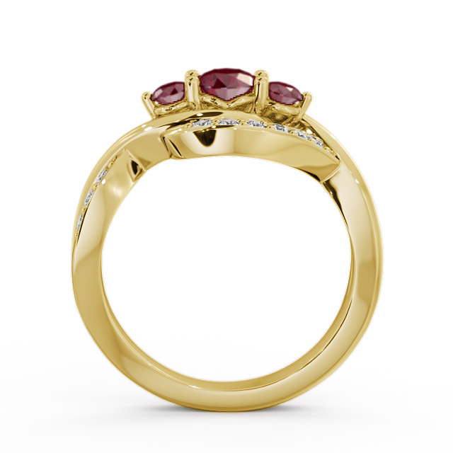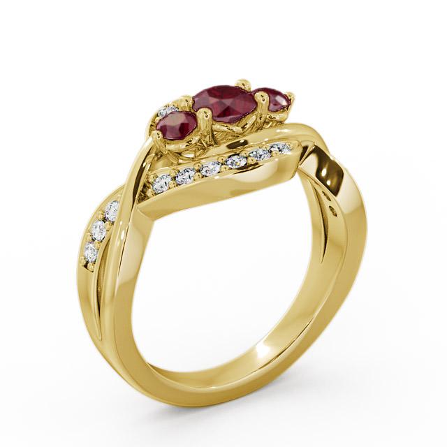 Three Stone Ruby and Diamond 0.70ct Ring 9K Yellow Gold | Delia