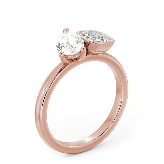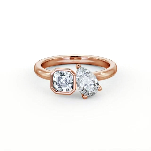 Toi et Moi Asscher and Pear Diamond Ring Set in 18K Rose Gold | Evelina