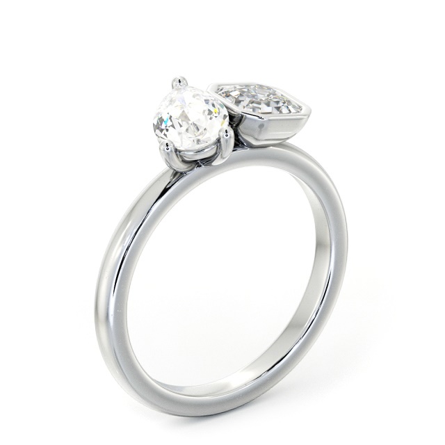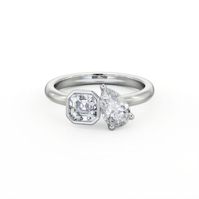 Toi et Moi Asscher and Pear Diamond Ring Set in 9K White Gold | Evelina