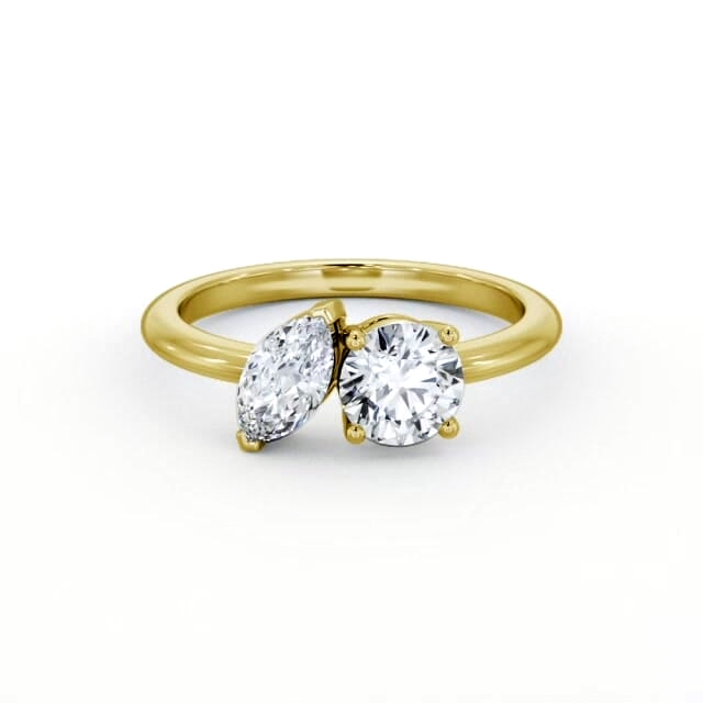 Toi et Moi Marquise and Round Diamond Ring Set in 18K Yellow Gold | Jamila