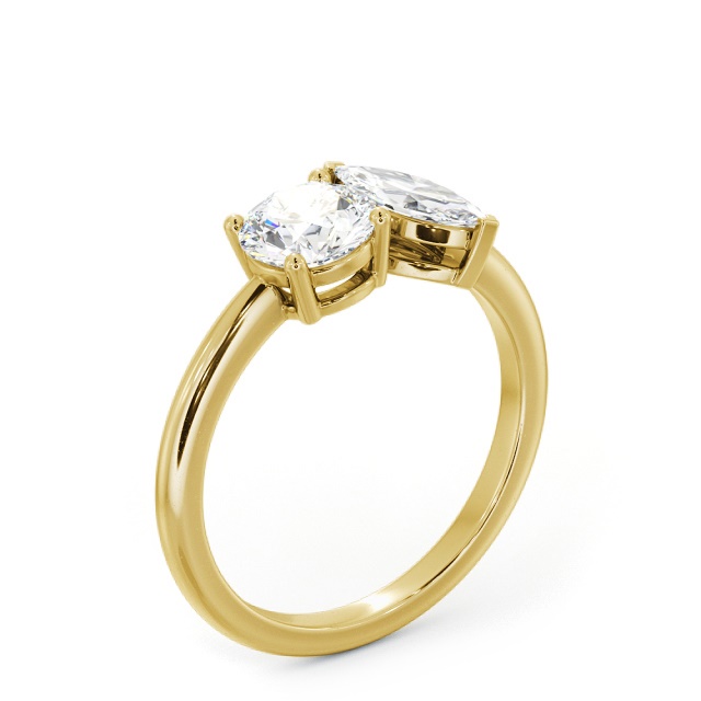Jamila two-stone diamond Toi et Moi ring, crafted in 18K yellow gold, showcases a beautiful blend of a round diamond and a marquise diamond. The combination of these two contrasting shapes gives the ring a distinct character, merging timeless elegance with modern flair. This design is available in a variety of metals, with an option for free customisation to suit your style.
