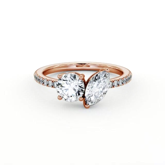 Toi et Moi Marquise and Round Diamonds Set in 18K Rose Gold | Jesita