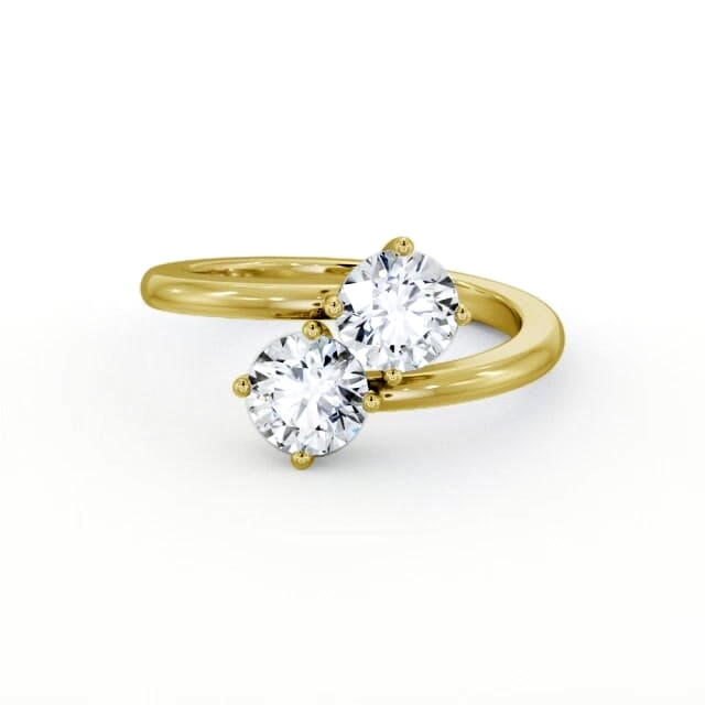 Salisa two-stone diamond Toi et Moi ring, crafted in 9K yellow gold. This elegant ring features two perfectly matched round diamonds, each set in sleek claw settings. The symmetry of the round diamonds gives the ring a refined, timeless elegance. It is available in a variety of metal options, with a complimentary customisation service to create a design unique to you.