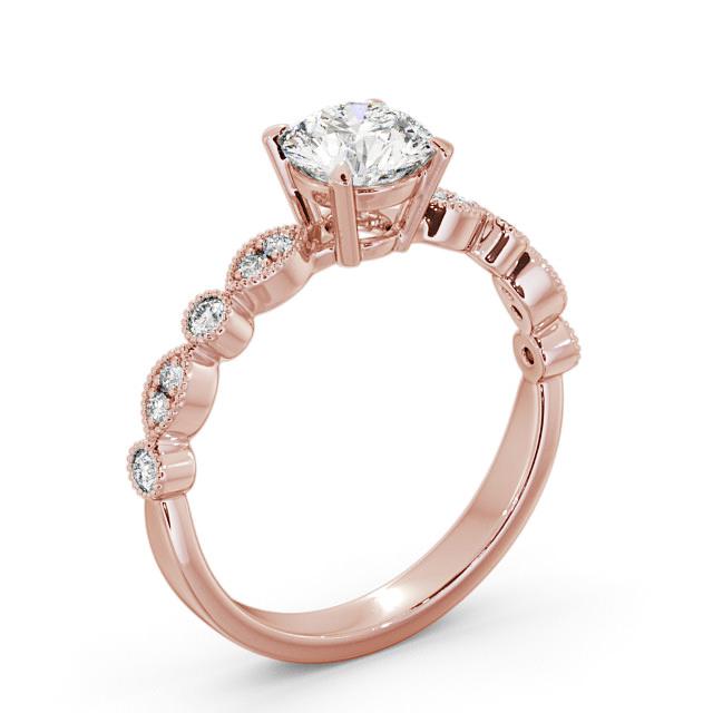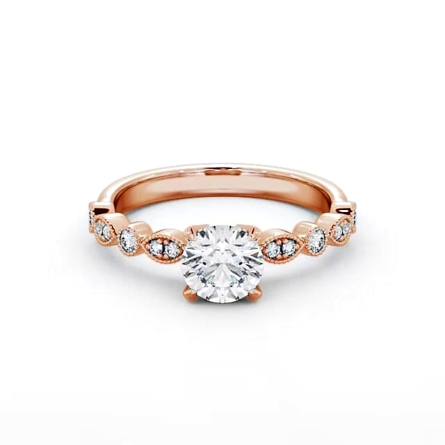 Jennah diamond engagement ring with a four claw 18K Rose Gold setting. Crafted with an elegant vintage styling, this engagement ring exhibits a round diamond at the centre with additional smaller diamond encrusted marquise and circle pattern segments on each side. Total diamond side stones weigh approximately 0.15ct with Clarity VS1 and Colour F. This ring is available in a range of metal options and your choice of natural or lab grown diamonds. We offer a free design service for any customised changes that you may require.