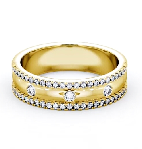 Yellow gold wedding rings are classic and timeless choices for both men and women. This type of wedding ring is made from a mixture of gold, copper, and silver, which gives it its signature warm golden hue. The amount of pure gold used in the ring is typically indicated by its karat weight, with 9K and 18K being the most common options for wedding rings. Yellow gold wedding rings come in a variety of styles and designs, from simple and understated to more ornate and intricate.